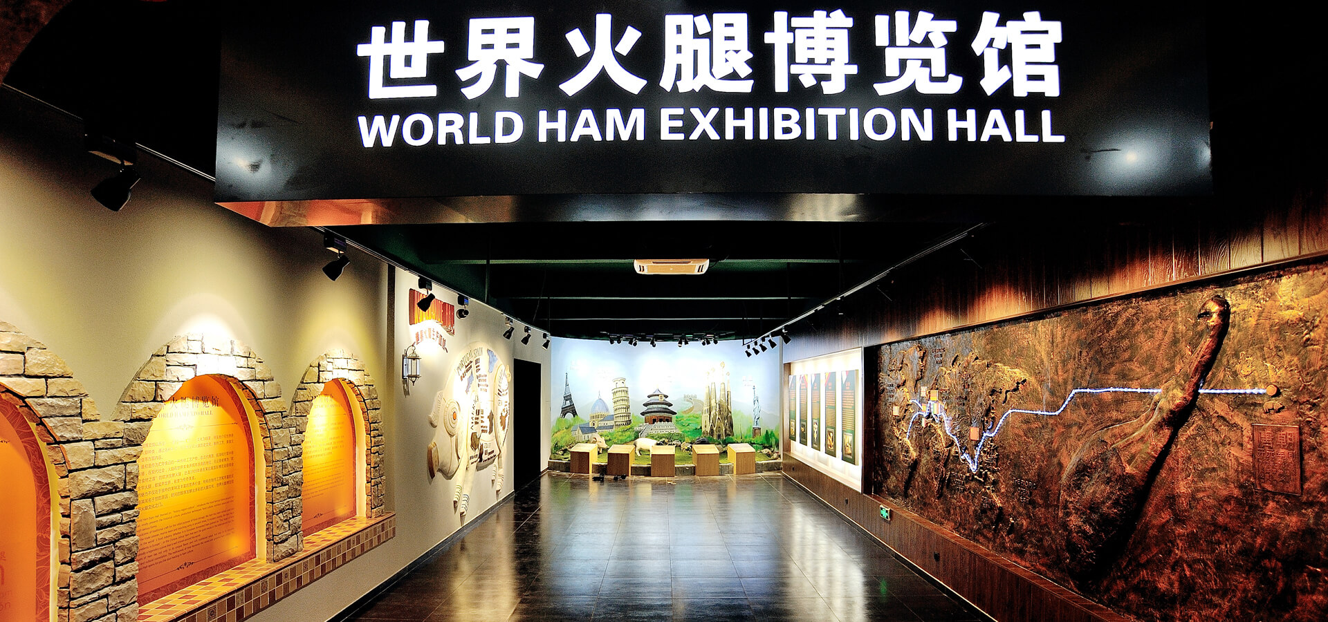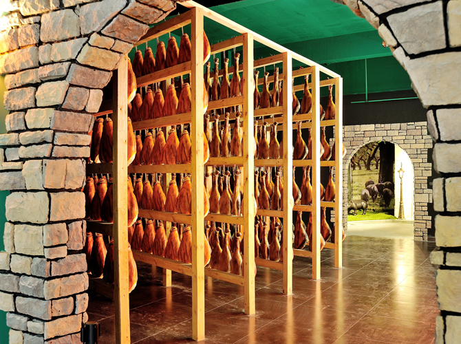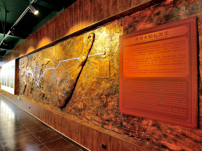 世界火腿博覽館是一個以世界火腿為主題的博覽館,用歷史-地域-工藝-文化為線索,通過展板、照片、聲光和布景等手法,翔實介紹了中國金華火腿、西班牙伊比利亞火腿、意大利帕爾瑪火腿、法國科西嘉火腿和巴黎火腿、美國的鄉(xiāng)村火腿等世界知名火腿的歷史人文,消費習(xí)俗、制作工藝、火腿美食等。