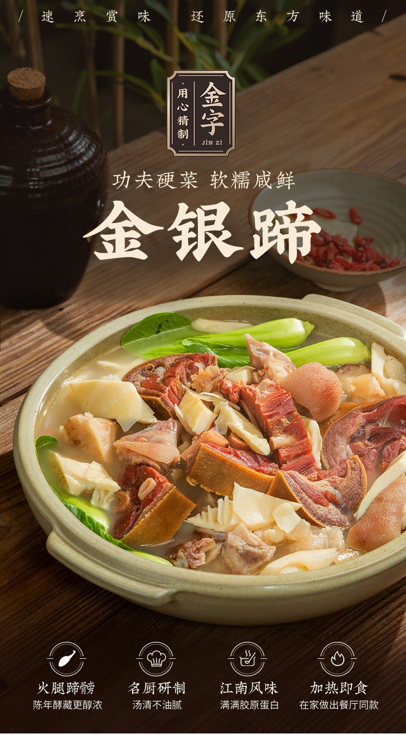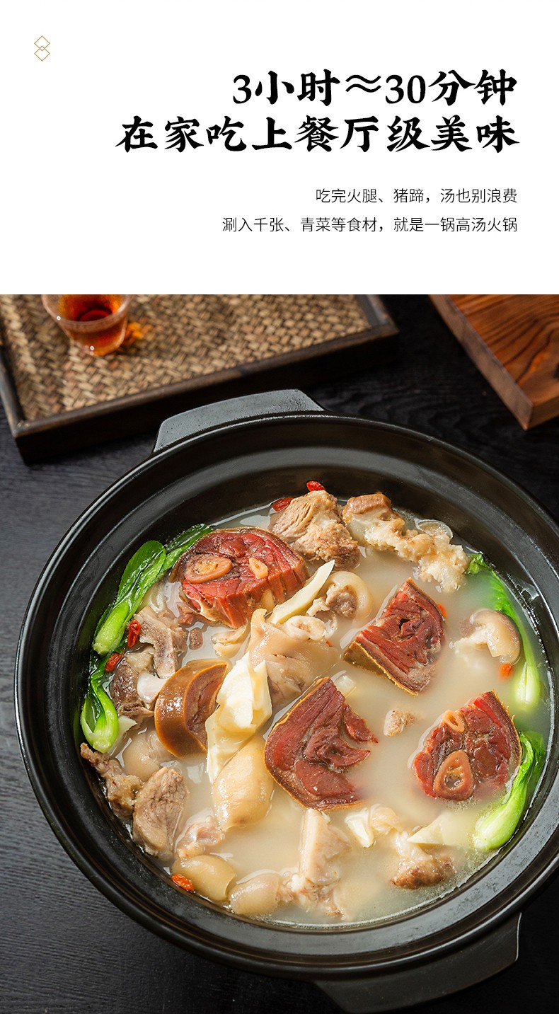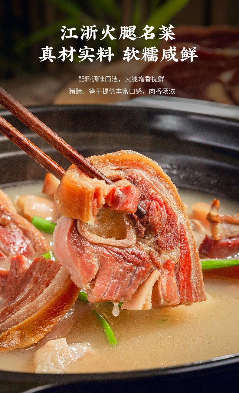 - 飲用水、豬蹄、金字火腿、筍干、黃酒、枸杞、味精